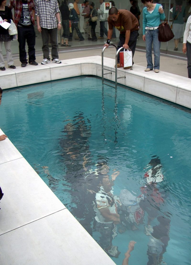 プールを覗くと下に人が居て、彼らが水の中に居るように見える。実際は水は10センチ程度でその下にガラスがはまっていて、プールの淵に約1m間隔で水の循環システムっぽいものが設置されていて、そこから水を吐き出しわざと波紋を作っている。ここは子供たちだけじゃなく、大人にも大人気のポイント。このプールは雨が降ると閉鎖されてしまうので行かれる方は要注意。