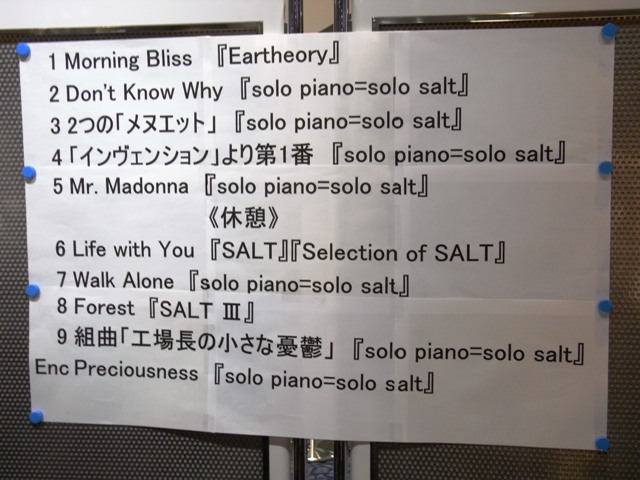 今日はSALTのピアノソロツアーの千秋楽なのだー。