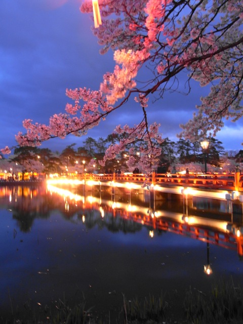 上野や弘前と共に、日本三大夜桜に数えられる桜の名所となりました。