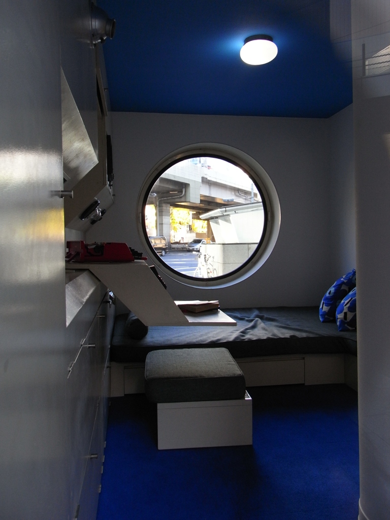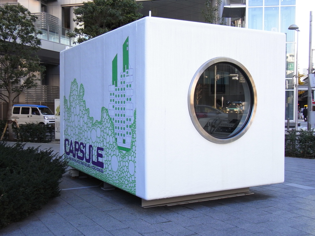 銀座の中銀カプセルタワービルの一室が六本木通りに展示されています。
