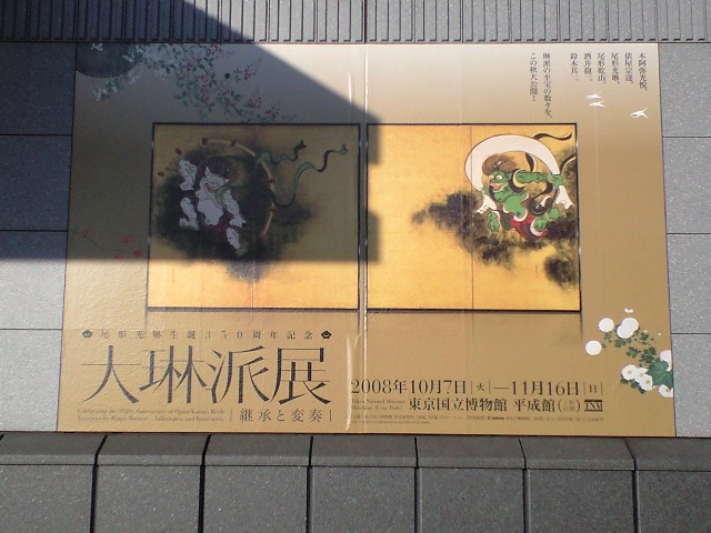 前回国立博物館に来た時、日本美術「対決」で出てきた作品も何点もあったのですが、今回の目的は「風神雷神図屏風」。日本美術対決の時に時期を逃して見られなかった物のうちの一つだったのです。で、今回のこの展示には4つの風神雷神図が展示されていて、全期間展示のものと、入れ替えのものとがありまして。これが全部そろった時に見に行こう、と決めていたので今日になったのです。