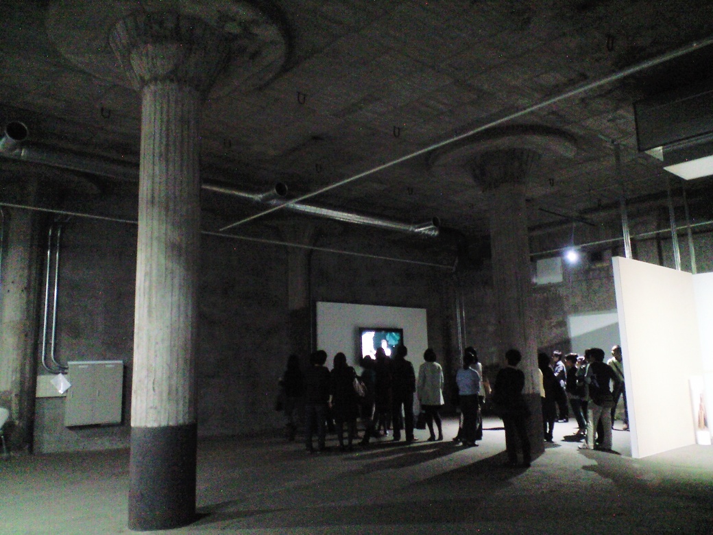 宗教的儀式をかたどって、人の生と死と肉体をリアルに表現するもので、生きたまま人を捌いたかのように見える(実際開くのは豚とか)映像が映るので、動物の血やら、腸やら、体液モドキやら、全裸やら、グッチャグチャです(笑)。こーゆー作品、女性の方がじっくり見ますねー。男性の多くは短時間で出ていきますが、女性は映像を最後まで見て行く人がほとんど。ま、私も例外ではありませんが。ただ、どれもホントに凄いので、普段平気な方もダメだったりするかもよー。お気を付けあそばせ。