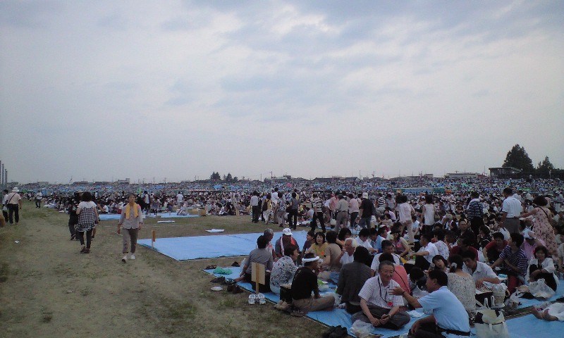 まだお昼だってのに、河川敷の自由席の席取りに長蛇の列。