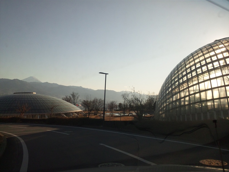 この温泉のちょっと下には長谷川逸子設計のフルーツミュージアムがあります。